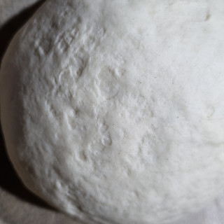 4.Nach dem Kneten den Teig mit einem feuchten Tuch abdecken und zwei Stunden ruhen lassen. Anschließend in 2 Stücke zu je 300g teilen, diese zu Kugeln formen und wieder abgedeckt weitere sechs Stunden gehen lassen.